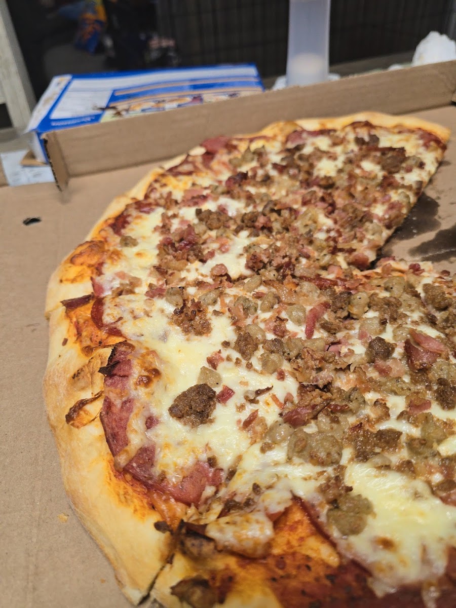A delicious pizza. You won't be disappointed with this mouth watering pie. I was taken by the crust. It was perfect. The sauce to topping ratio was on point. It was not overpowered by any one topping and was not greasy. I've eaten many pizzas and this is in my top 5.
